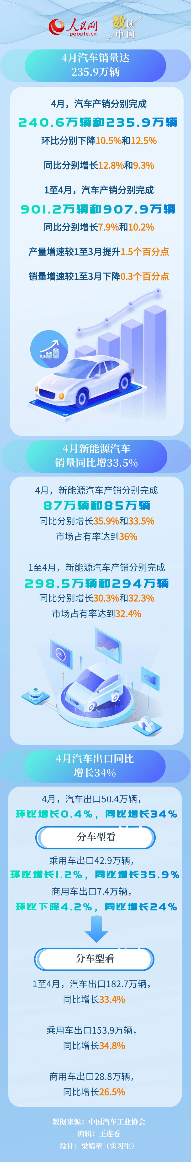长运平台:4月我国新能源汽车和汽车出口同比继续保持快速增长